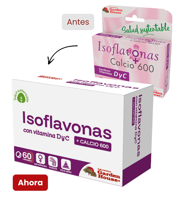 Ingredientes: Isoflavonas de soja extracto 62,5 mg + Calcio 600 mg + vitamina D3 2,5 mcg + vitamina C 8 mg.