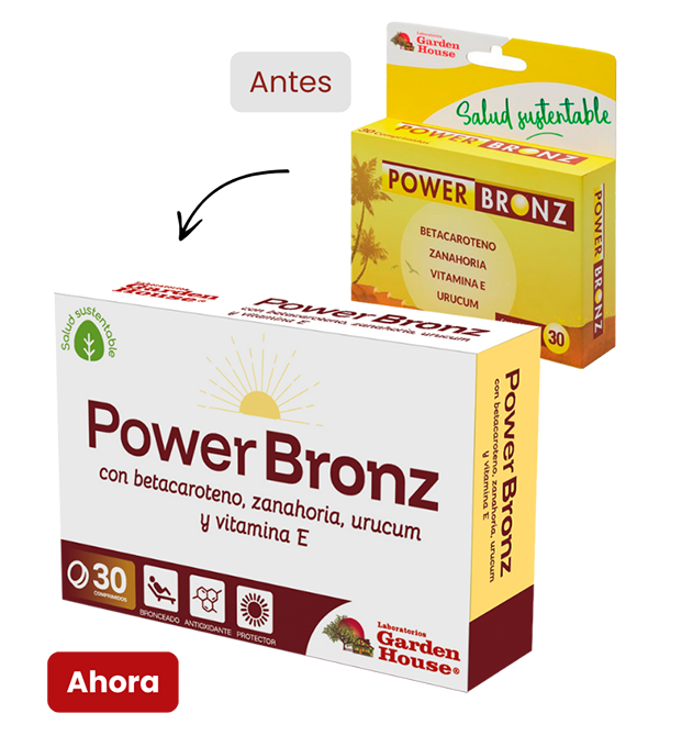 Ingredientes: Urucum (Bixa Orellana, Extracto seco) 200 mg; Zanahoria deshidratada 100 mg, Vitamina E (alfa tocoferol) 5 mg; Beta Caroteno 3,6 mg.